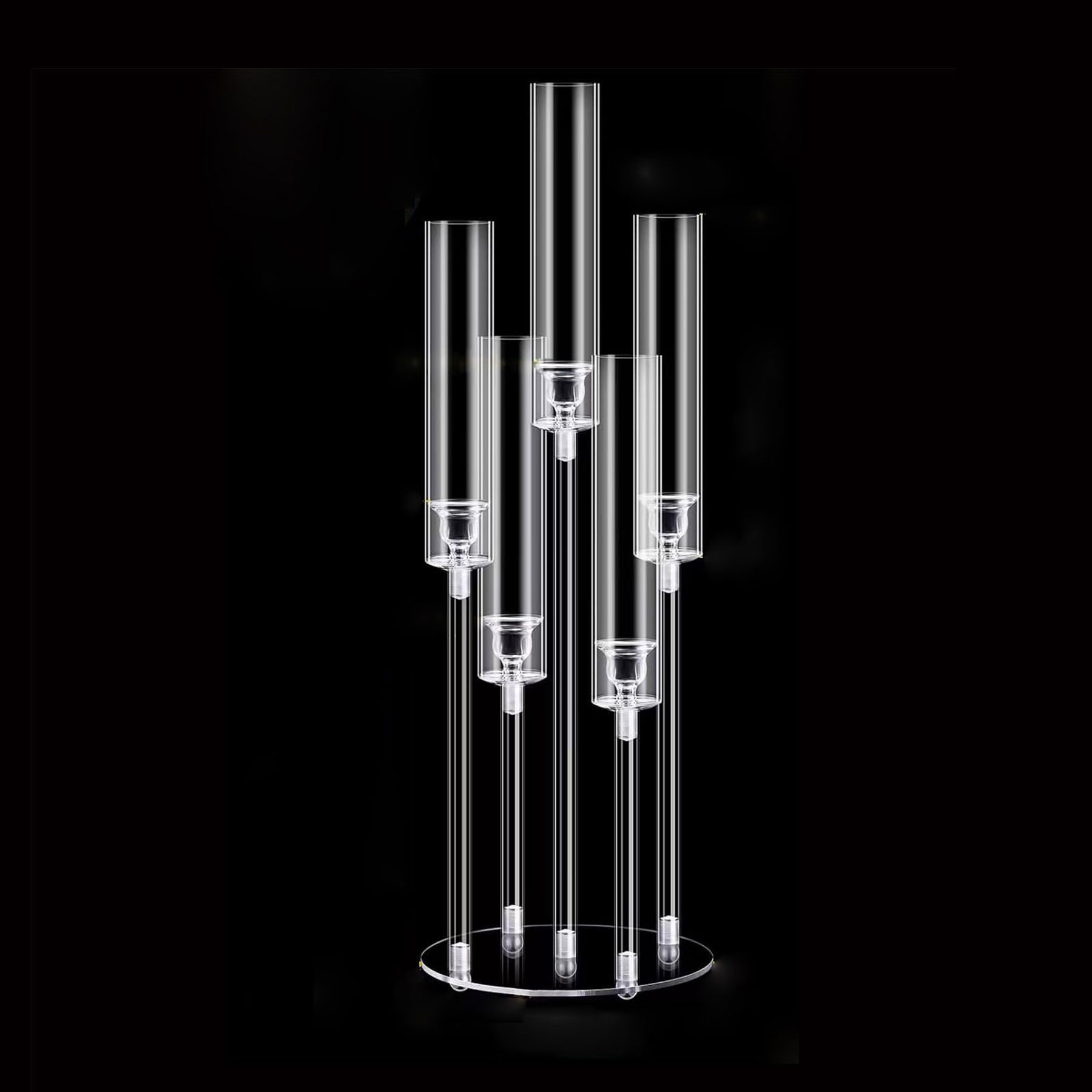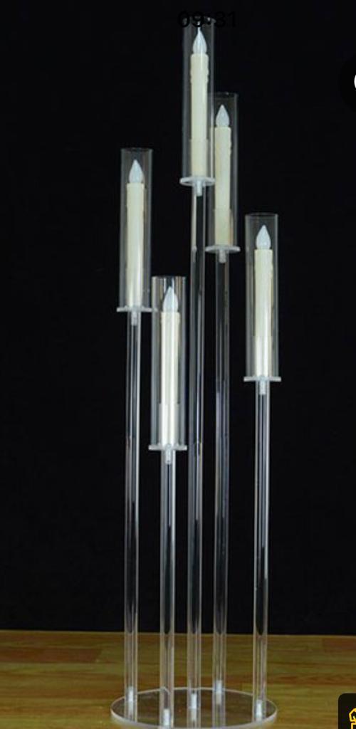 This is a beautiful tall centrepiece comes in Acrylic Candelabra and features different height arms. The Acrylic Hurricane Candle Covers are ONLY to be used with LED candles.