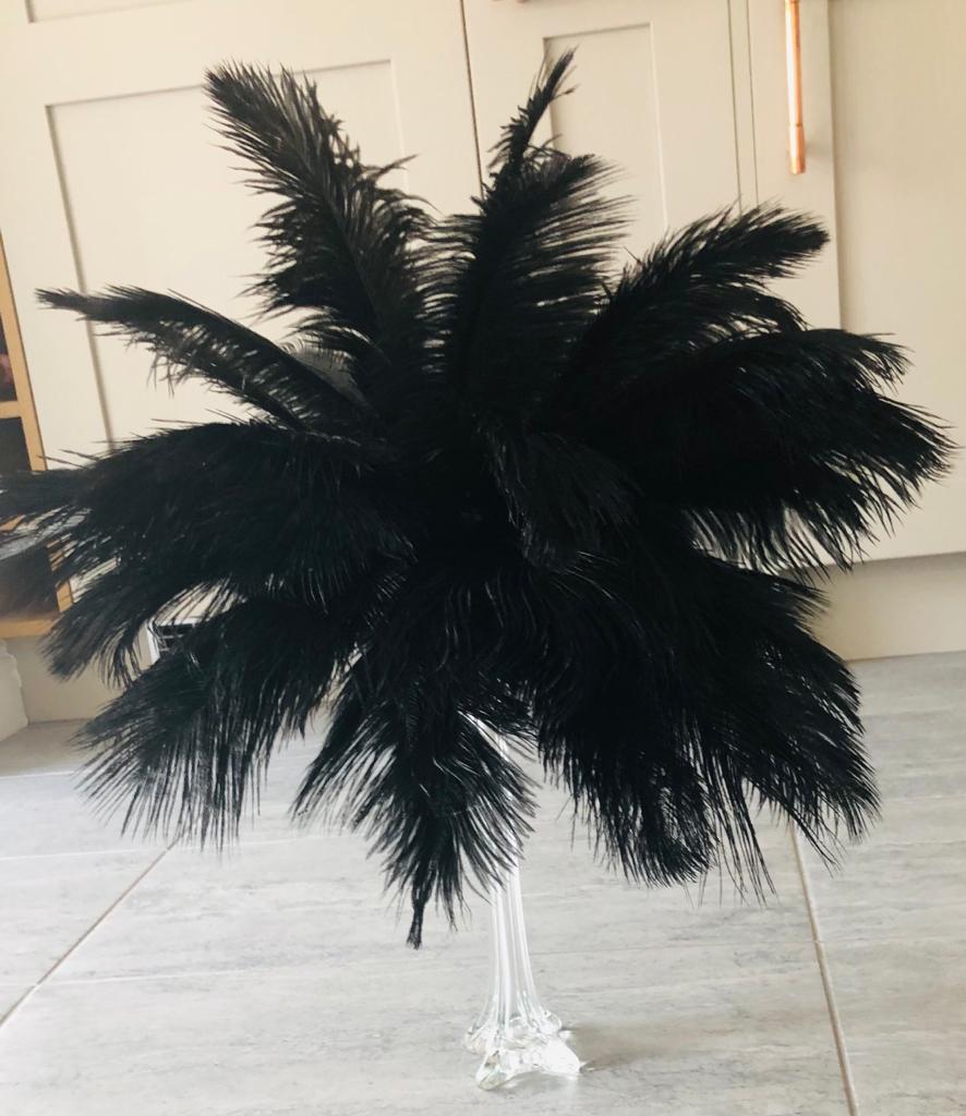 Black feather arrangement in Eiffel Tower 30cms vase.