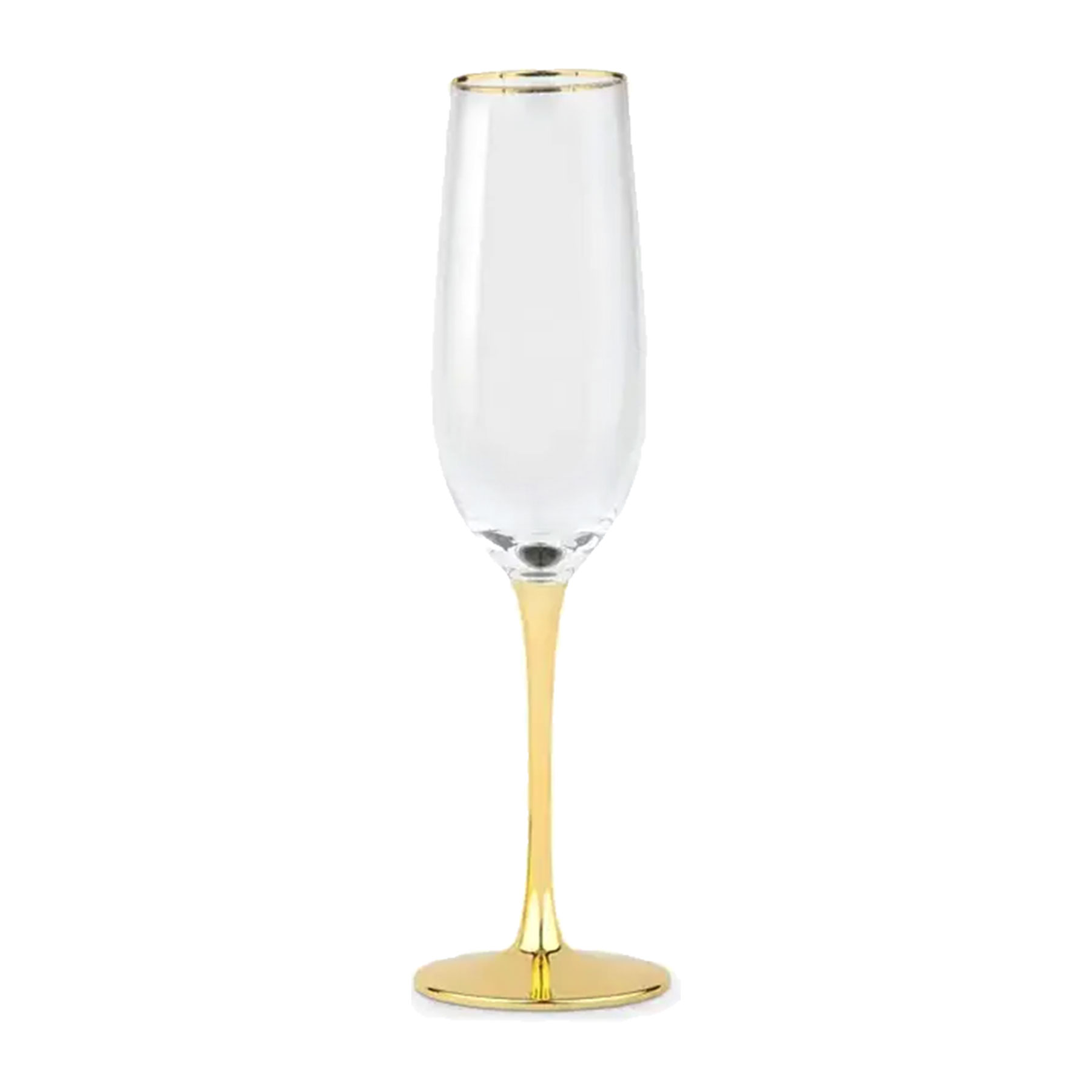 Stylish champagne flute with gold rim and stem.