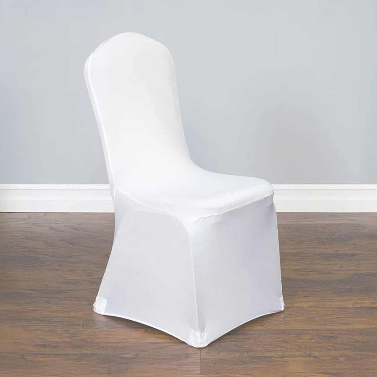 White Spandex seat covers known as universal seat covers will fit various banqueting chairs. Suitable for all elegant events.